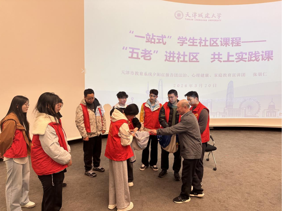 为强化我校“百强示范‘一站式’学生社区”建设,丰富社区课程实践内容,充分挖掘“五老”在立德树人中的育人优势,近日,由校关工委、学工部与国际教育学院联合组织的“银龄行动进社区”实践教育活动,在国际教育学院报告厅顺利举行。本次活动特邀天津市教育系统夕阳红报告团成员、71岁的张崇仁老师担任主讲,用“银龄”之声为青年学子带来一堂“燃”点满满的社区实践课。